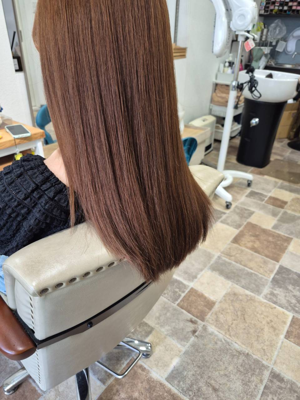 ブリーチなしヘアカラー 2025/09/24 ブリーチなしヘアカラー 2025/9/24 ハイダメージなので 明るくなってますが ブリーチはしてないです。 ブリーチしようか迷っていらっしゃいますけどね。 ブリーチしないと出ない色味は確実にあります。 ただ ダメージリスクは大きいです。 色持ちも そんなに長くはないので それでもブリーチしたいかどうか よく考えて 決めたいですね。 一度ダメージ を受けた髪はもう二度ともとの状態には戻らないので。 今日のお仕事
