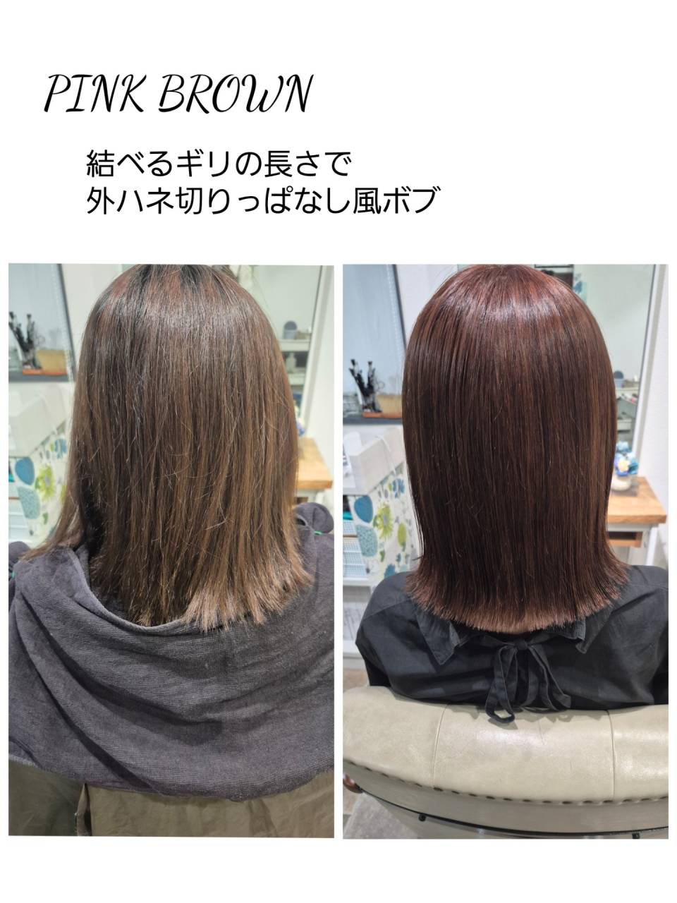 黄色く抜けやすい髪にはプンクブラウンが良いですよね。